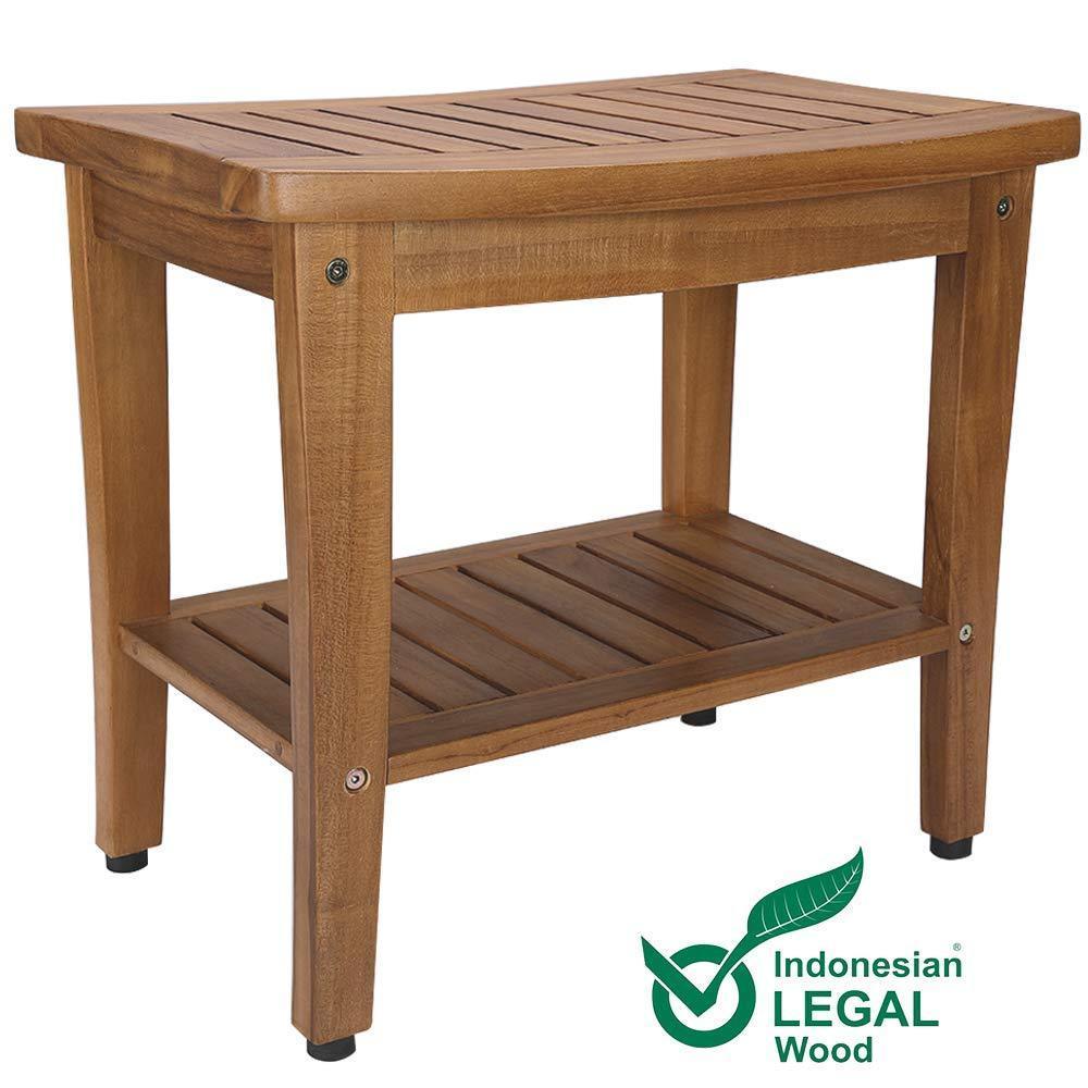 Teak Shower Bench, Teak Shower Stool, 18" Teak Wood Bath Spa Shower Stool Corner Bench Stool, All Teak Wood Corner Seat Shower Bench/Stool,Assembly Required