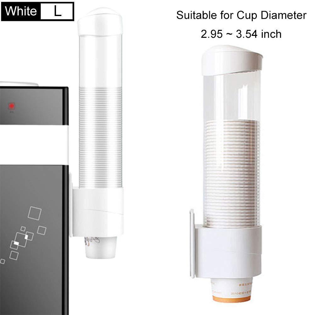 Samhe Cup Dispenser Medium Pull Type, Paste or Screw Plate Mountable Cup Holder, Fits 5oz - 7oz Cone or Flat Bottom Cups, 16” Tube Length, Mounting Water Dispenser Cooler or Wall (Medium, White)