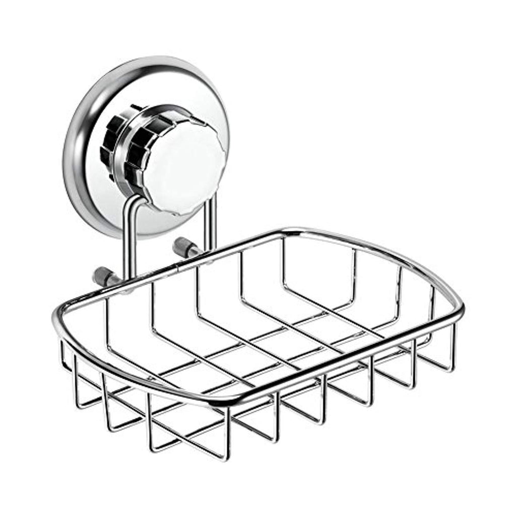 HASKO accessories - Super Powerful Vacuum Suction Cup Soap Dish - Strong Stainless Steel Sponge Holder for Bathroom & Kitchen (Chrome)