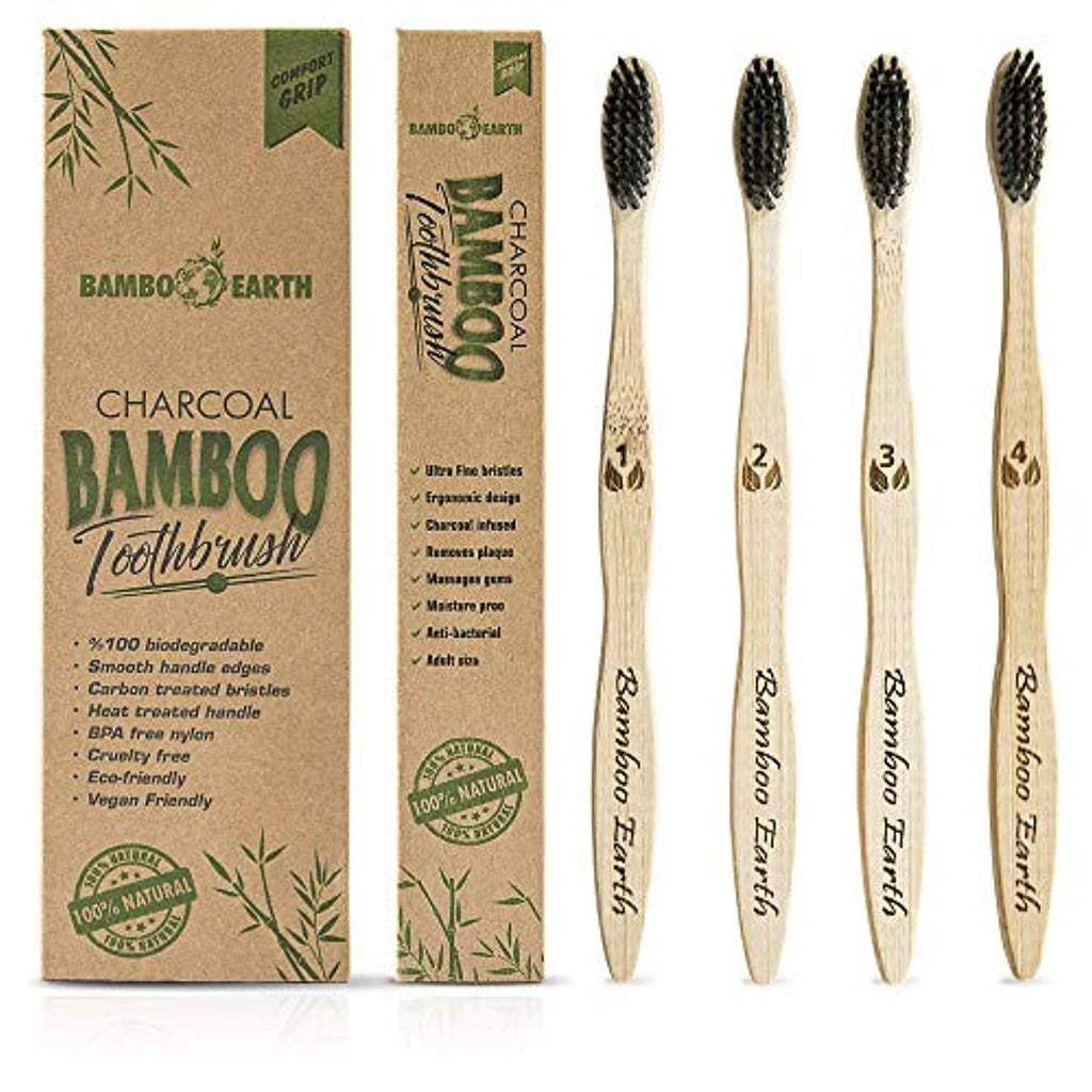 Bamboo Charcoal Toothbrush - Natural Biodegradable And Organic With 100% Eco Friendly BPA Free Bristles Smooth Wood Handle And Zero Waste Packaging - Pack Of 4 Wooden...