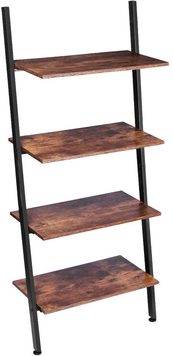 KingSo Ladder Shelf 4-Tier Bookshelf Leaning Storage Rack Shelves for Living Room Kitchen Home Office Metal Frame Stable Sloping Industrial Ladder Shelfs Leaning Against The Wall Rustic Brown