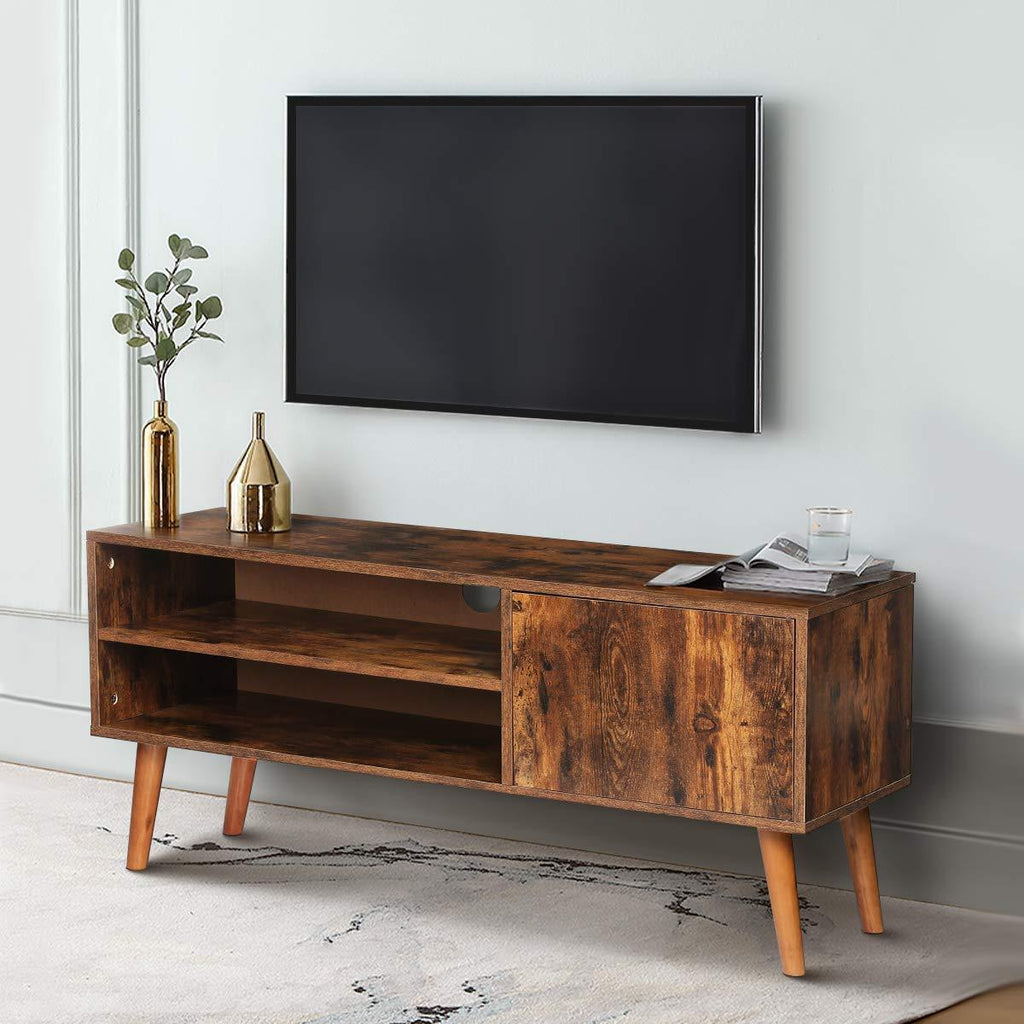 KingSo Retro TV Stand Mid Century Modern Entertainment Center TV Console for Flat Screen TV Cable Box Gaming Consoles for Living Room Entertainment Stand with Storage Shelves