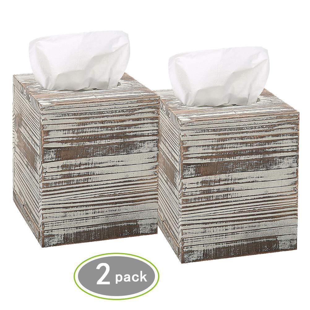 Hossejoy Square Tissue Box Cover with Slide-Out Bottom Panel. Perfect for Bathroom Vanity Countertops, Bedroom Dressers, Night Stands, Desks and Tables(Pack of 2