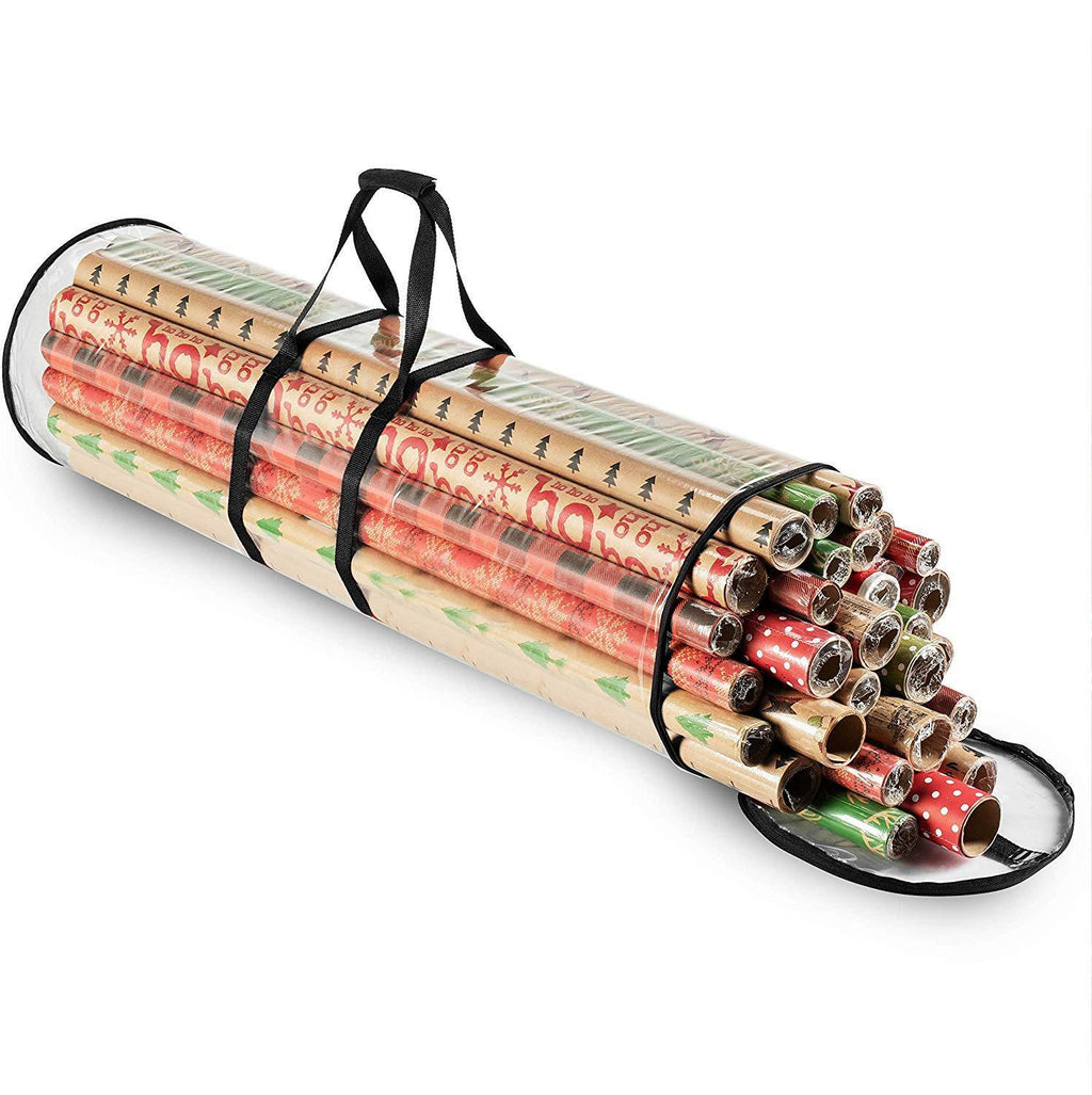 Christmas Wrapping Paper Storage Bag - Fits 14 to 20 Standard Rolls Upto 40"- Slim Design Underbed Wrapping Paper Storage Container, Water Proof PVC Fabric, Clear by ZOBER