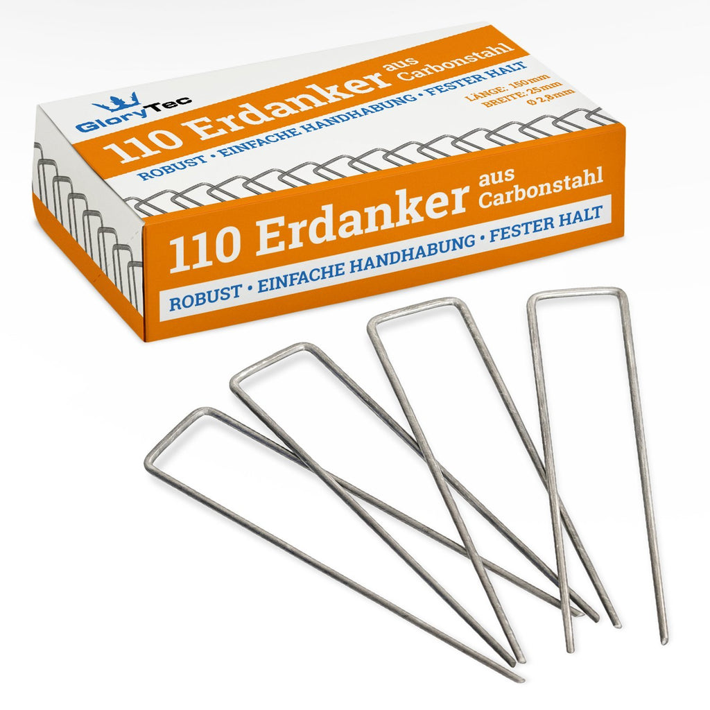 Glorytec 110 Garden Stakes & Landscape Staples - Fabric Pins for Landscaping, Gardening, Sod Weed Barrier - Ground Turf Nails, Anchor 6 INCH Carbon Steel Sturdy Rust Resistant Gardening Supplies