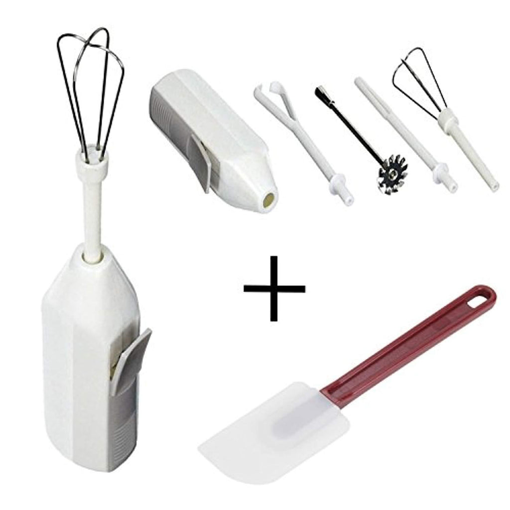 NorPro Mini Hand Mixer Set 5 Piece Electric Milk Portable Cordless Whipper Mixer Blender Frother, Battery Opperated + 10" High Temperature Silicone Spatula