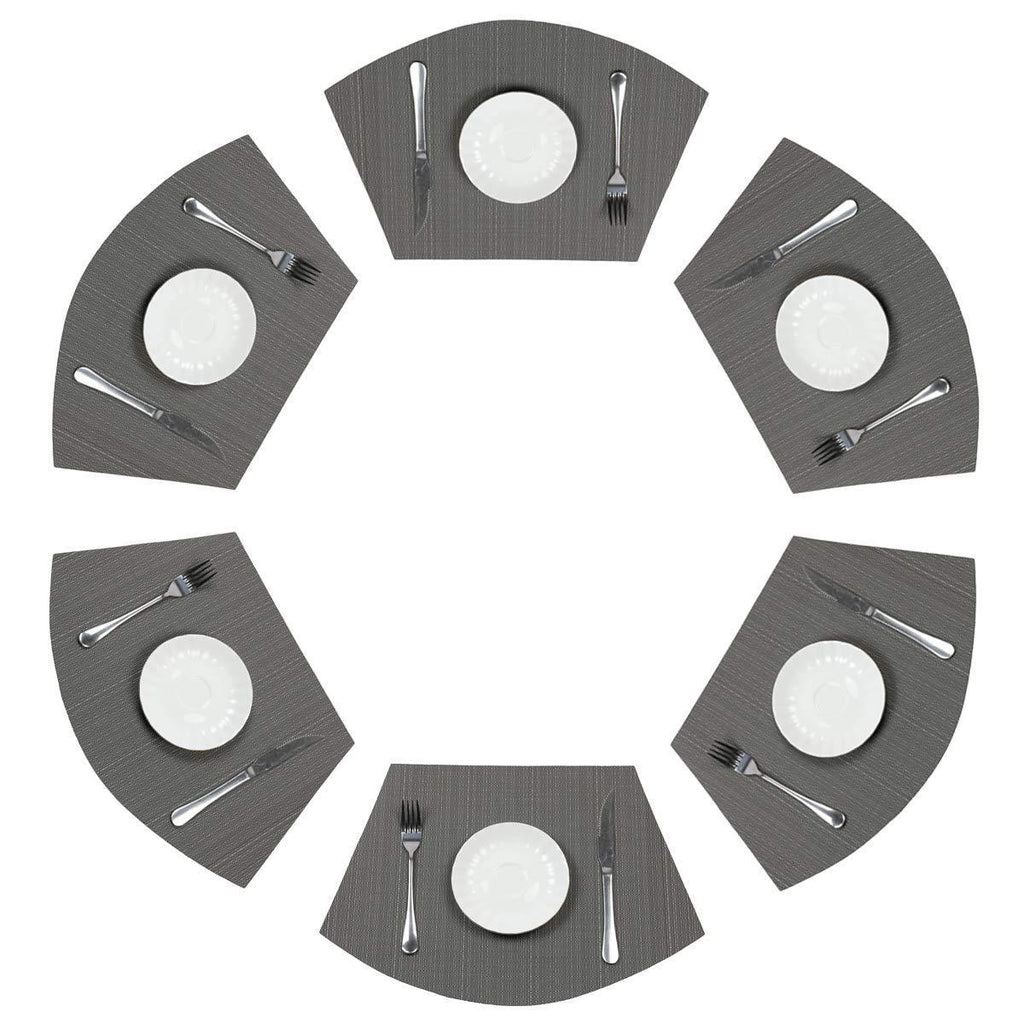 PAUWER Grey Round Table Placemats Set of 7 Wedge and Round Placemats Set for Round Dining Table Washable Woven Vinyl Placemats Set