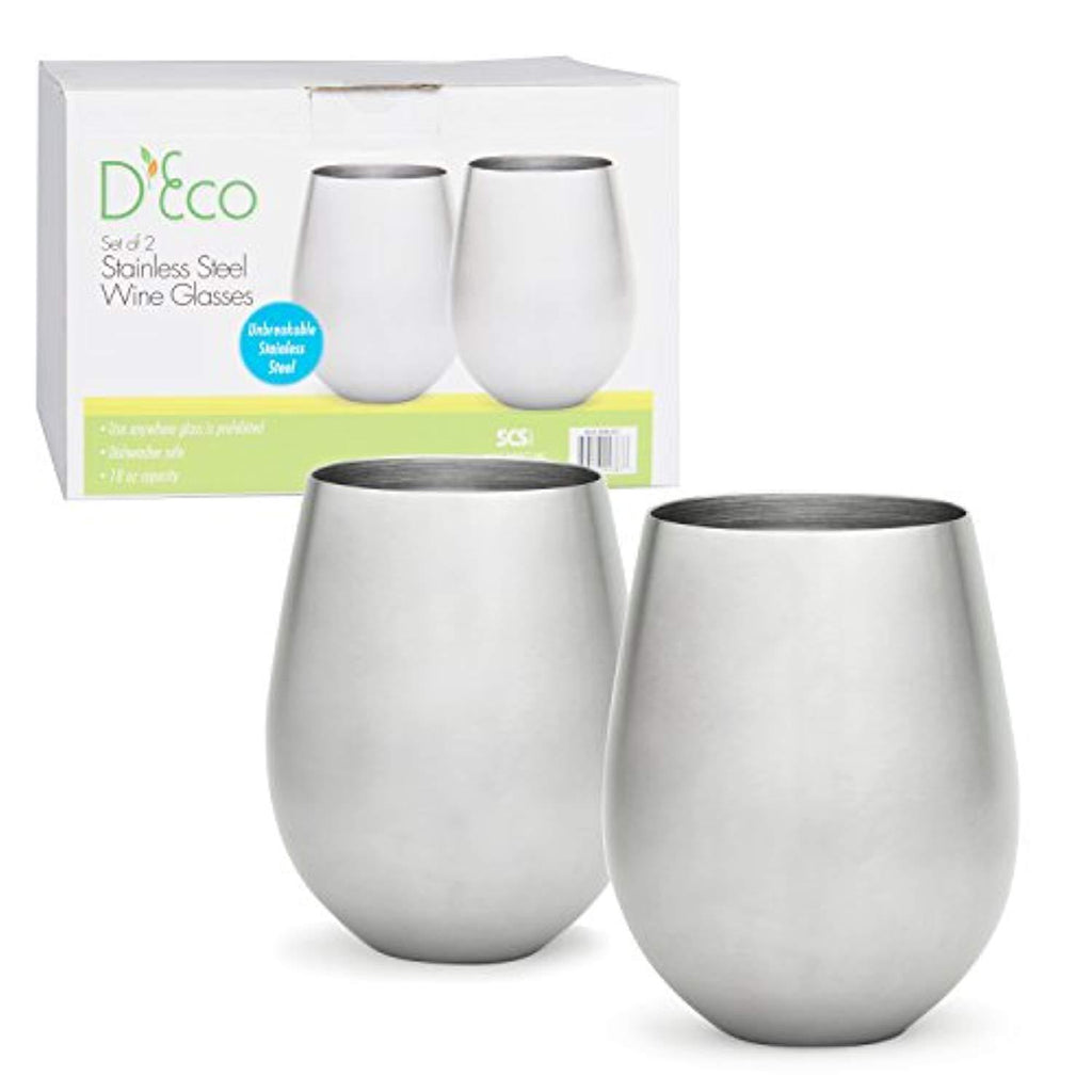 Stainless Steel Stemless Wine Glasses, Set of 2, 18 oz, Made of Unbreakable BPA Free Shatterproof SS & Dishwasher Safe
