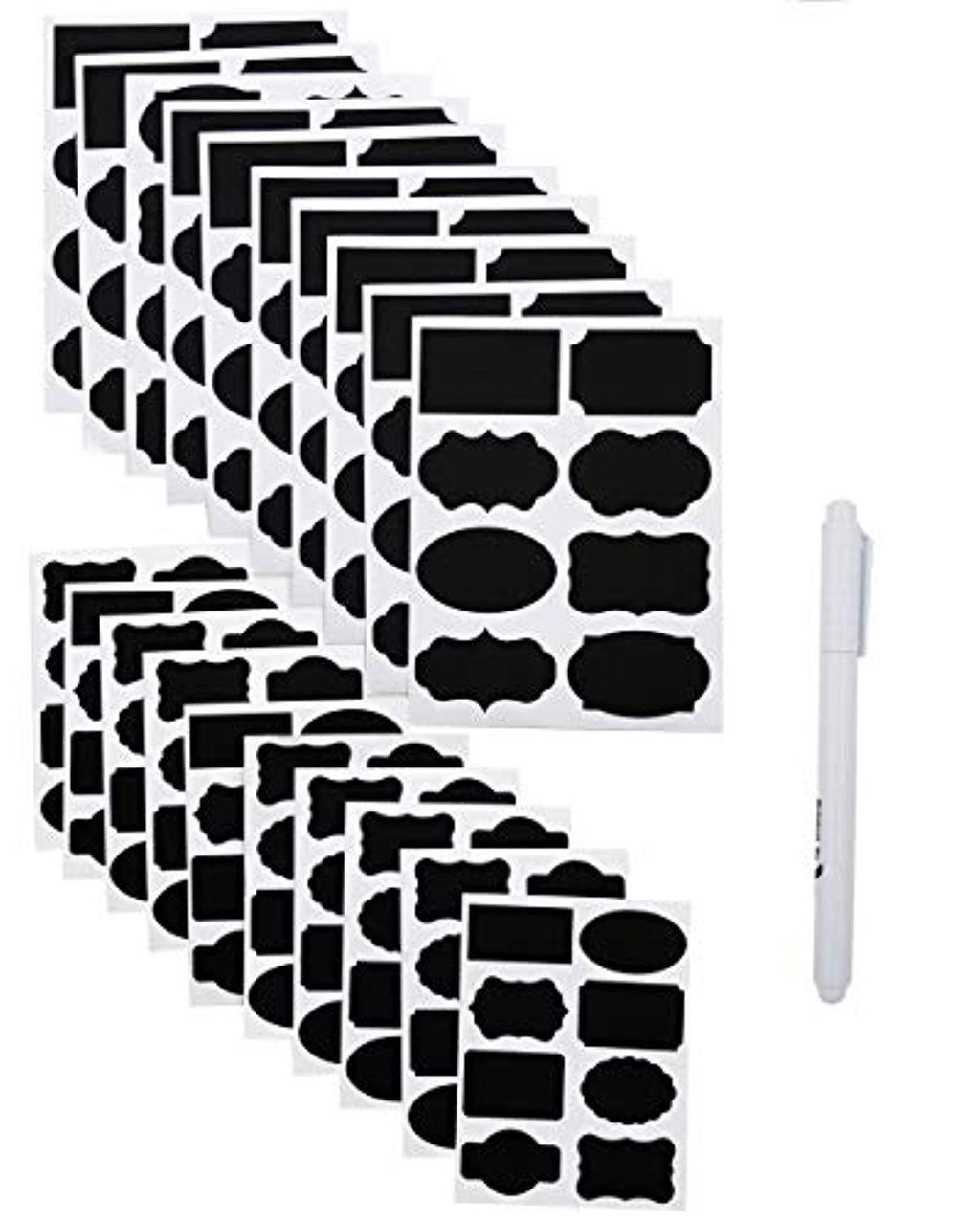 160 PCS Chalkboard Labels, Sackorange Pantry Stickers for JARS,Mason, Spice, Glass and Canisters, Large Reusable Waterproof Blackboard Vinyl Set, Dishwasher Safe with White Chalk Marker