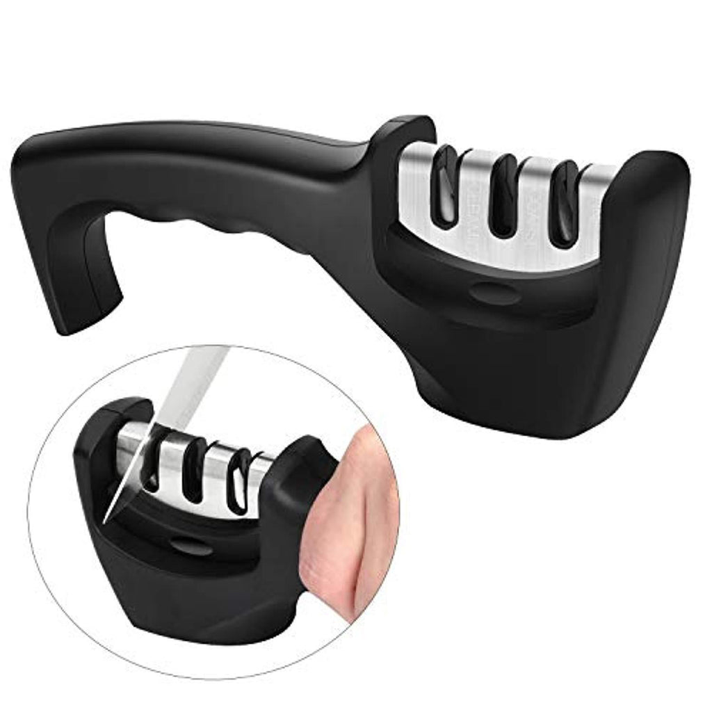 Knife Sharpener, Kitchen Knife Sharpener, 3-Stage Profession Knife Sharpening Tool, Helps Repair, Restore and Polish Blades, Ergonomic Design and Safe to Use