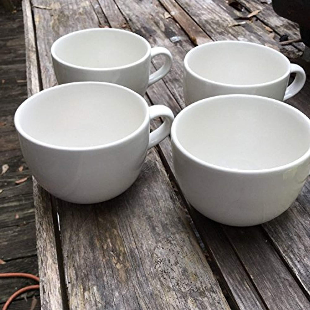 Large Grand Ceramic White Mugs for Cappuccino, Coffee, Latte, Cereal, Ice Cream, Etc., Set of 4, White, 22oz