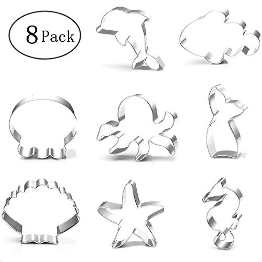 Under The Sea Cookie Cutters Set-8 Piece-Mermaid Tail,Dolphin,Clownfish,Seahorse,Seashell,Octopus,Starfish and Jellyfish Cookie Cutter Molds-Stainless Steel