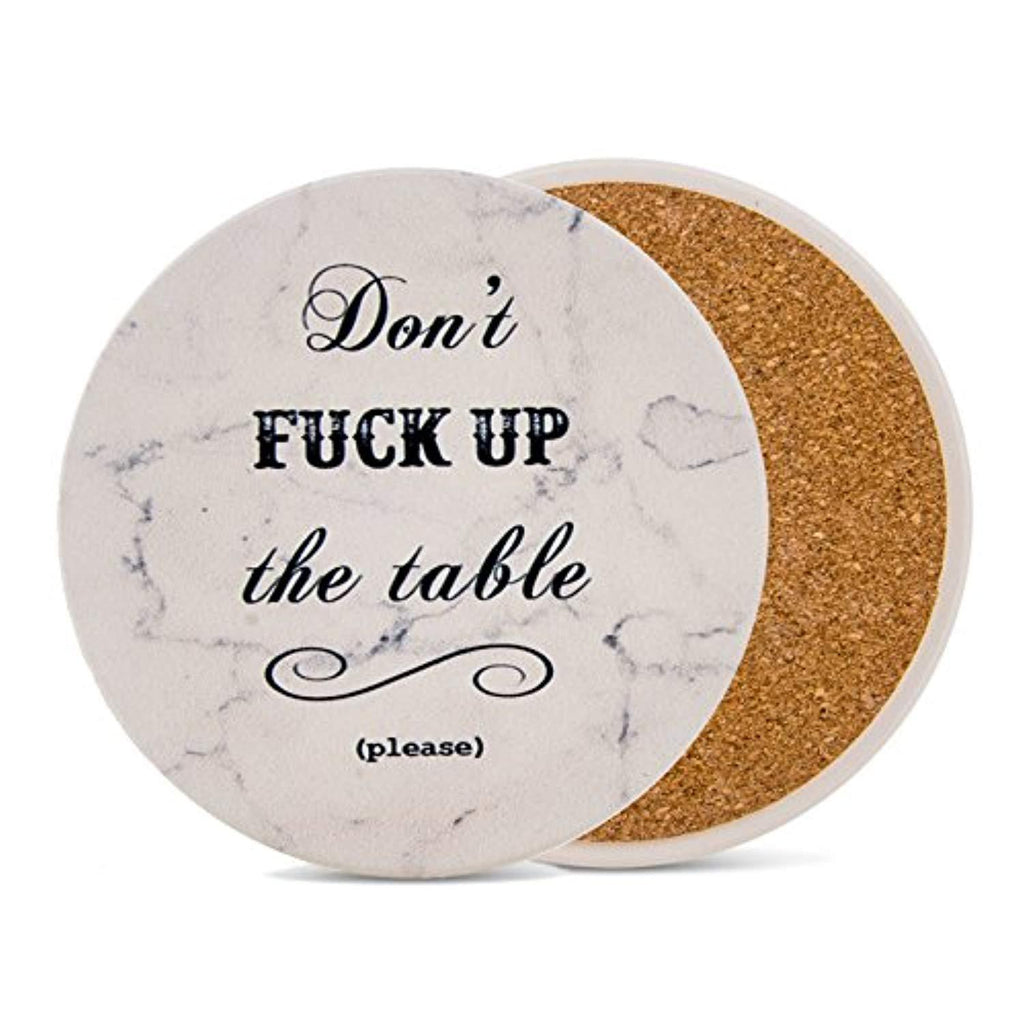 Urban Mosh Coasters for Drinks - Funny Absorbent Ceramic Stone Set of 6 White Marble Style with Cork Backing and Holder Included, Protect Your Furniture From Spills, Scratches, Water Rings and Damage