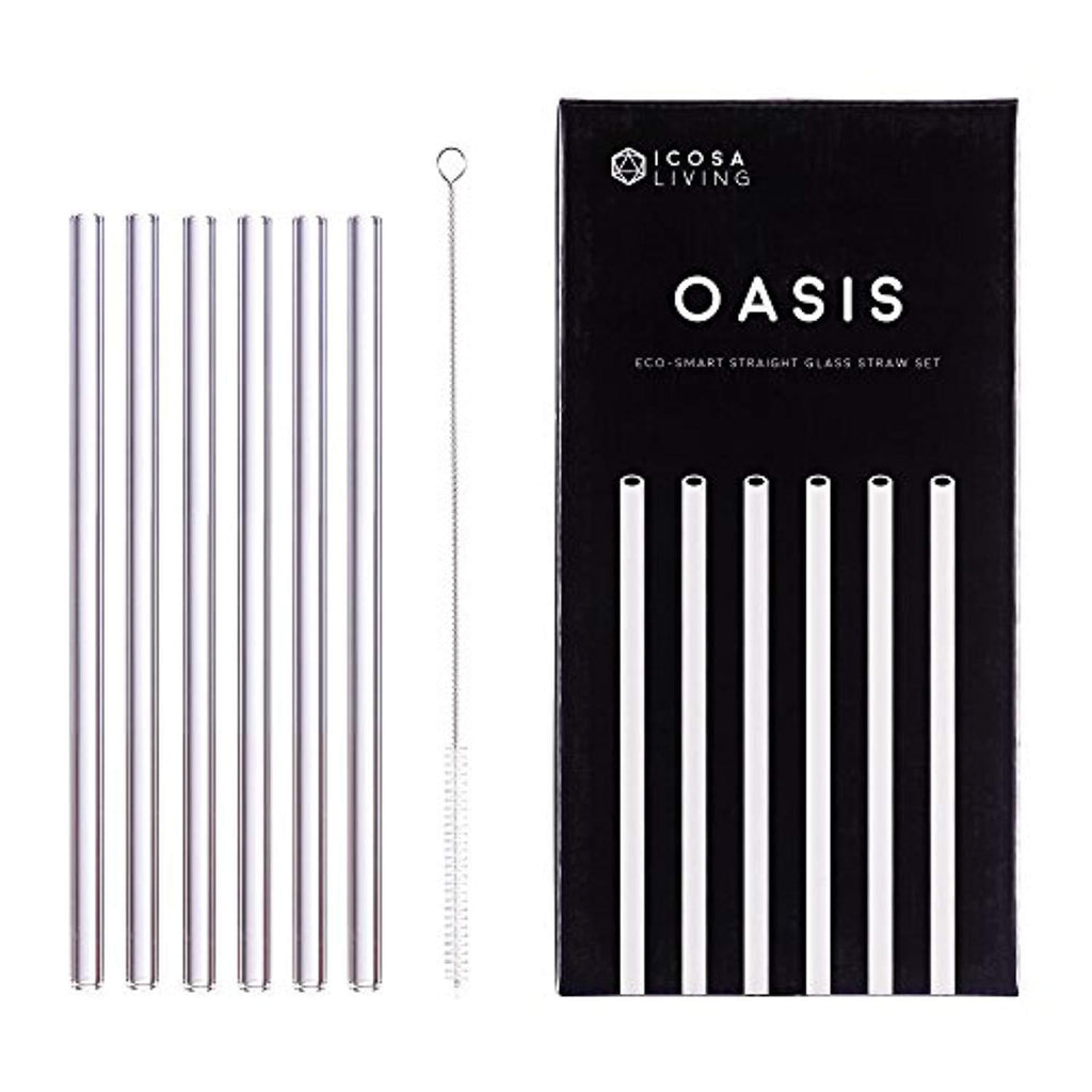 OASIS Premium Straight Glass Straws Set - 6 Pack, 9" x 10mm