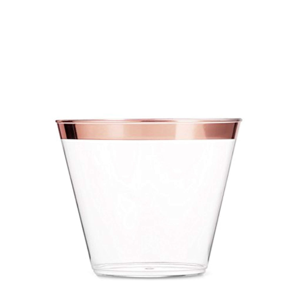 100 Rose Gold Plastic Cups - 9 Oz Disposable Gold Rimmed Plastic Tumblers For Party Holiday Wedding and Occasions - Fancy Party Cups with Gold Rim by Party-Ca