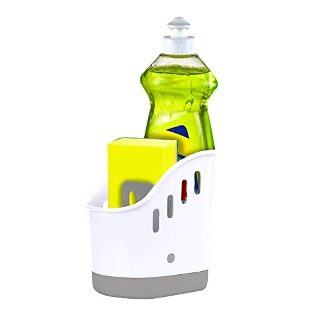 Sink Caddy Sponge Holder, Dish Soap Organizer for Kitchen Sink with Removable Compartment and Non-Slip Base for Brushes Scrubber Drainers, Drain Holes for Sanitary Drying Premium ABS