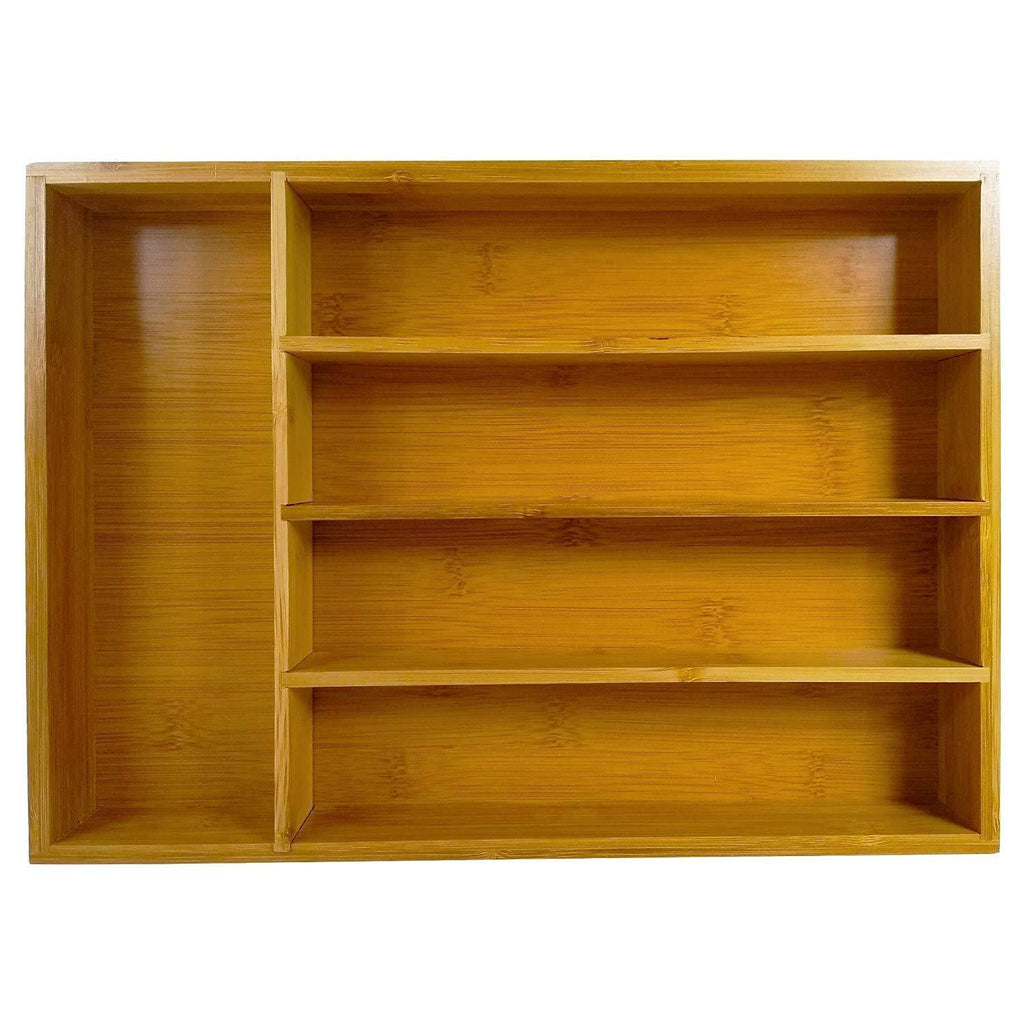 Bamboo Silverware and Utensil Drawer Organizer | Wooden Tray for Kitchen Bathroom Holds Cutlery Tools Gadgets and Supplies 10" x 14" x 2" by Trinity Sales