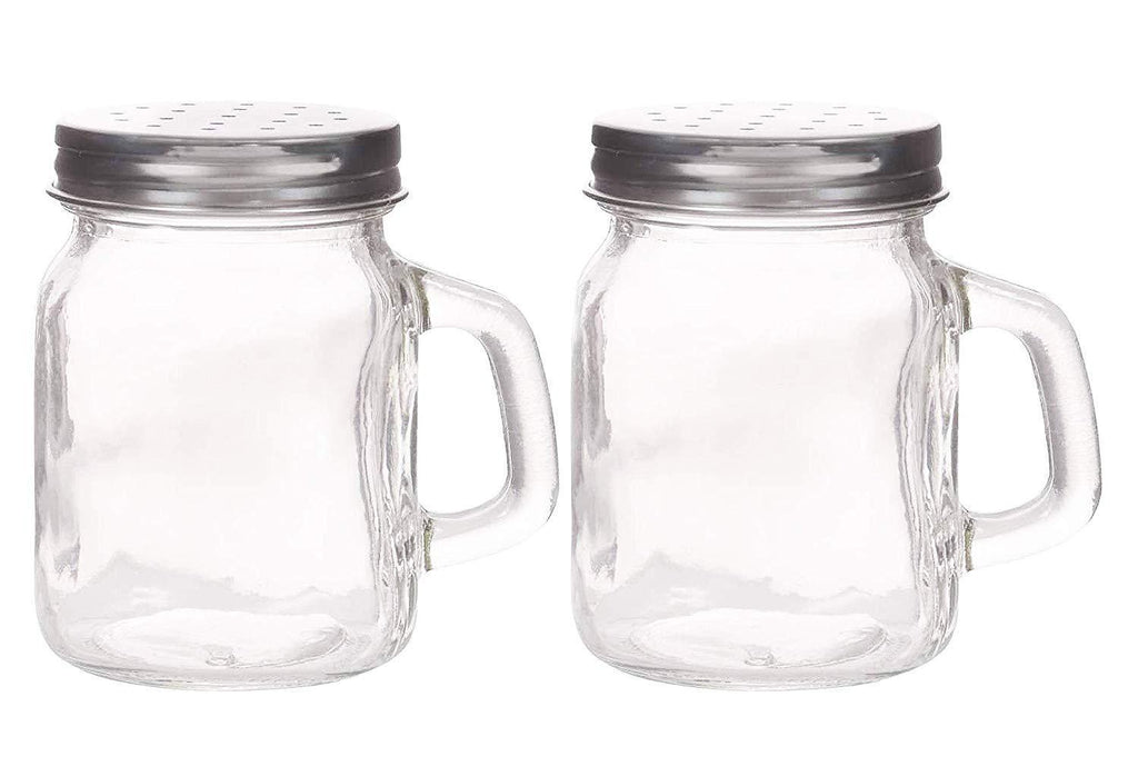 Clear glass Salt and Pepper shaker set | Glass Jar styled salt and pepper shakers with handle