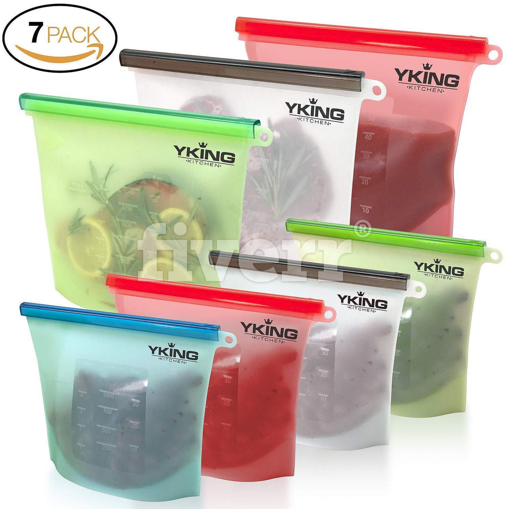 Reusable Silicone Food Bag Set of 7-Size: 3 Large & 4 Medium-Silicone Food Storage Bag-Silicone Bags Reusable for Sous Vide-Sandwich-Freezer-Silicon Bag Reusable-Food Storage Bags-Reusable Silicon