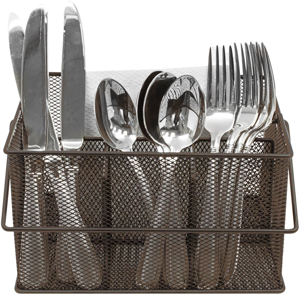 Sorbus Utensil Caddy — Silverware, Napkin Holder, and Condiment Organizer — Multi-Purpose Steel Mesh Caddy—Ideal for Kitchen, Dining, Entertaining, Tailgating, Picnics, and much more (Bronze)
