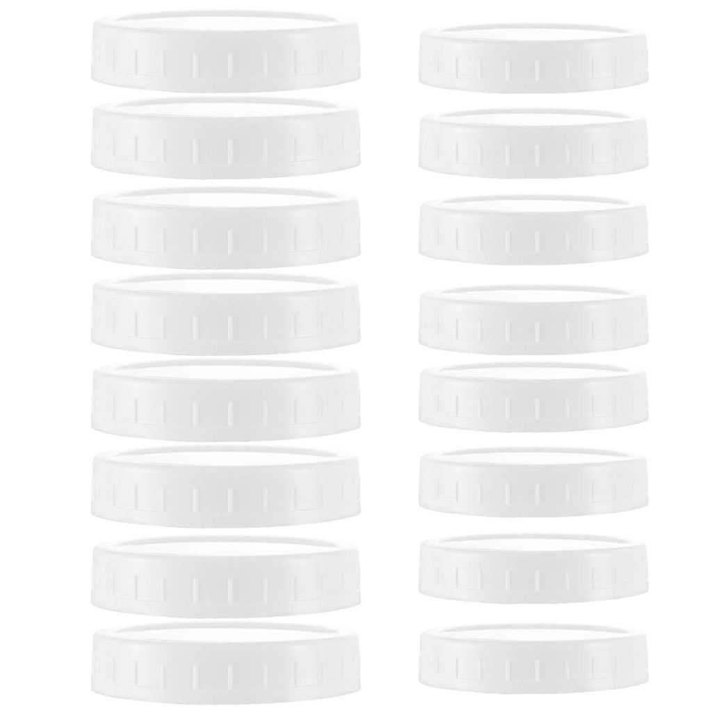 STARUBY 16Pcs Plastic Mason Jar Lids - 8 Regular Mouth Lids and 8 Wide Mouth Plastic Storage Caps for Mason Jars, White