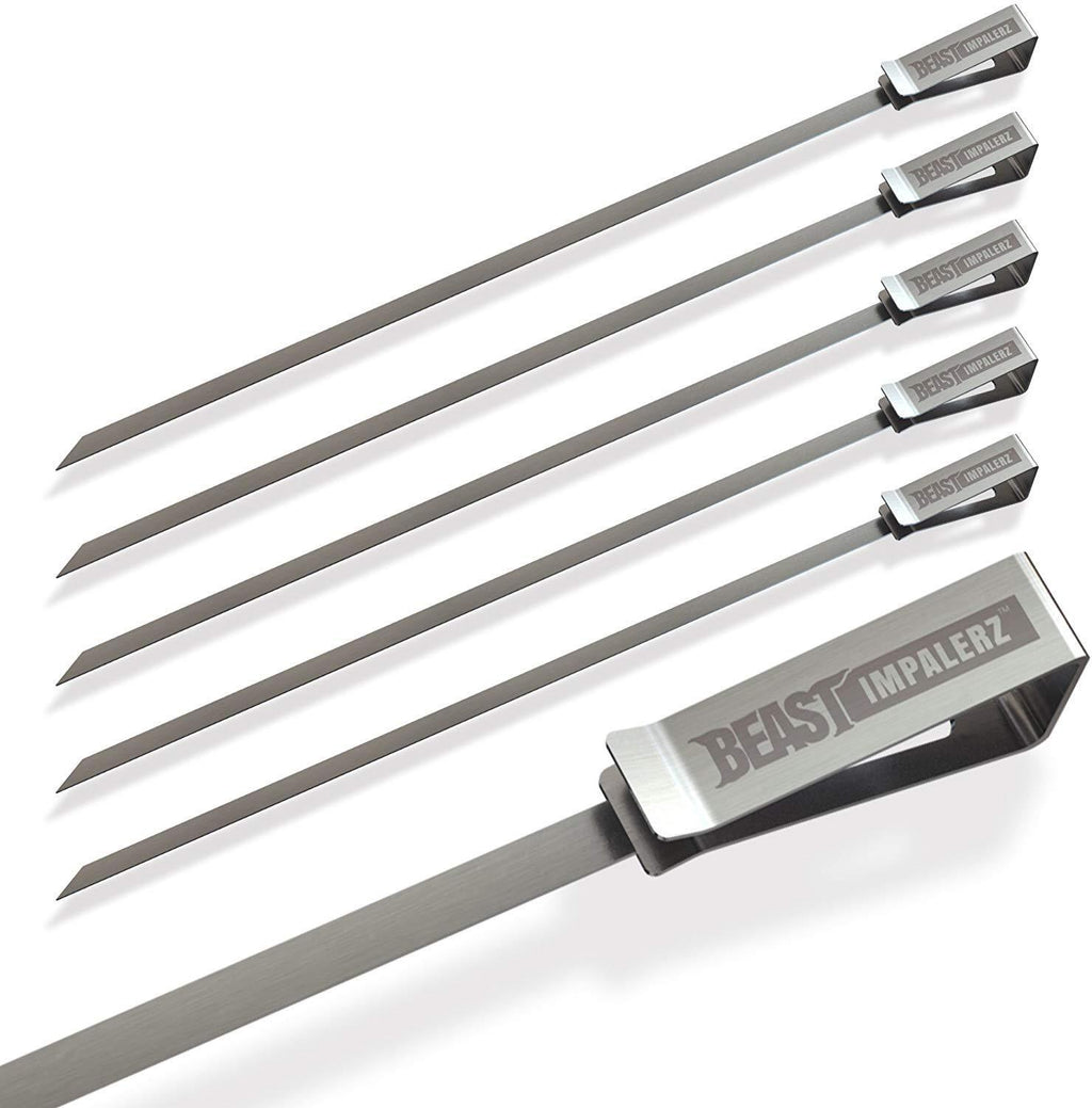 Grill Beast BBQ Skewers - 6 Reusable Flat Blade Stainless Steel with Sharp, Angled Points for Grilling Seafood, Vegetable, or Fruit Kebabs