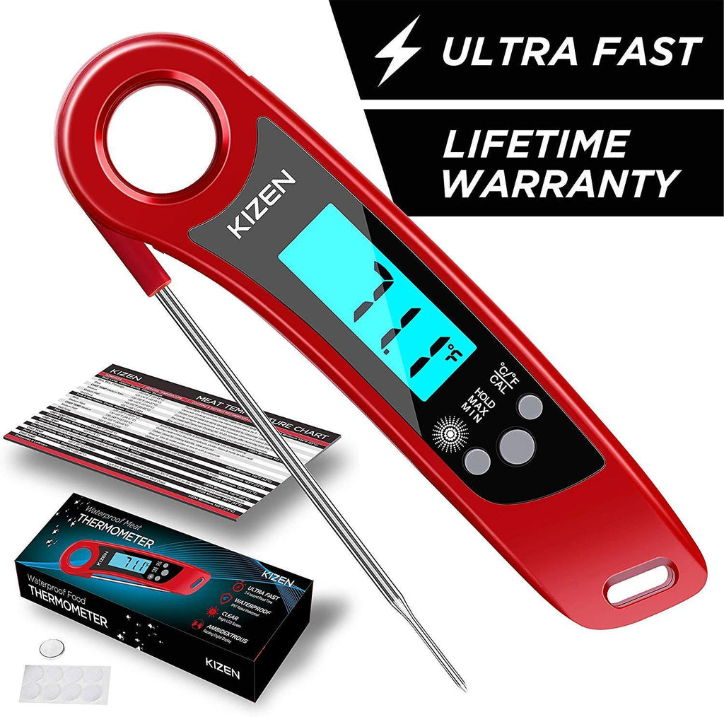 Kizen Instant Read Meat Thermometer- Waterproof Ambidextrous Thermometer with Backlight & Calibration.