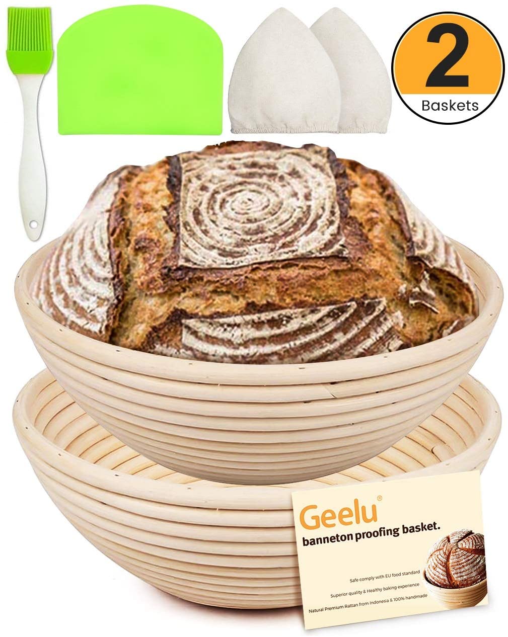 Round Bread Banneton Proofing Basket Kit Bowl Set of 2 Sourdough Natural Rattan Proofing Baskets 9 Inch with Dough Scraper Brotform Cloth Liner Basting Brush by XUANNIAO