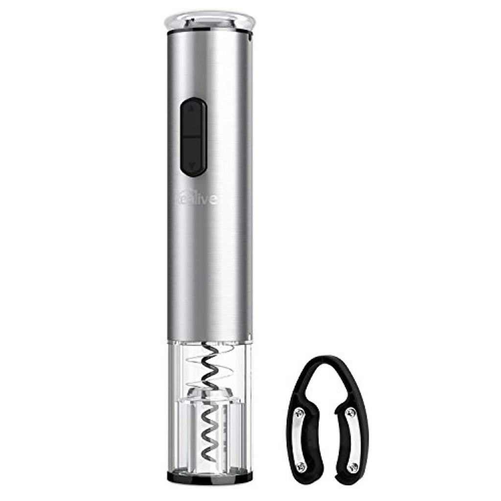 Kealive Cordless Electric Wine Bottle Opener, Wine Bottle Opener Corkscrew with Foil Cutter, Battery Powered, Metallic Finish, Silver