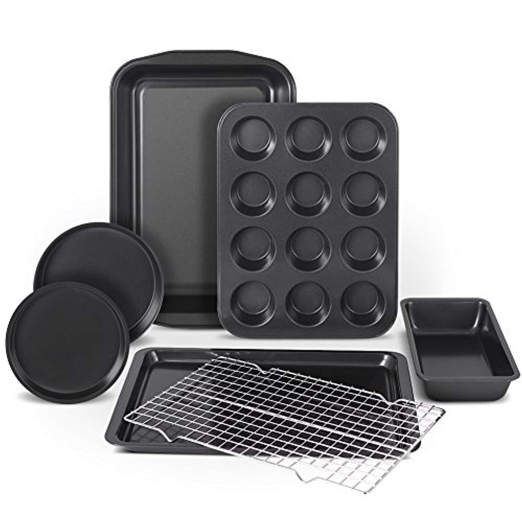 Kootek 7-Piece NonStick Bakeware Set, Muffin Pan, Loaf Pan, Cake Pan, Round Pan, Baking Sheet Pan, Cooling Racks Professional Baking Supplies Rectangle Cookie Pans