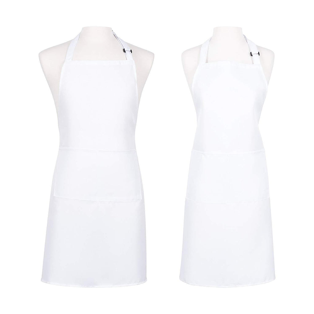 KAF Home 2 Pack Unisex Adjustable Water Resistant Apron - One Size Fits All Kitchen Chef Apron With 2 Large Oversized Pockets - Perfect for Crafting, Cooking, Baking, Painting, Gardening - White