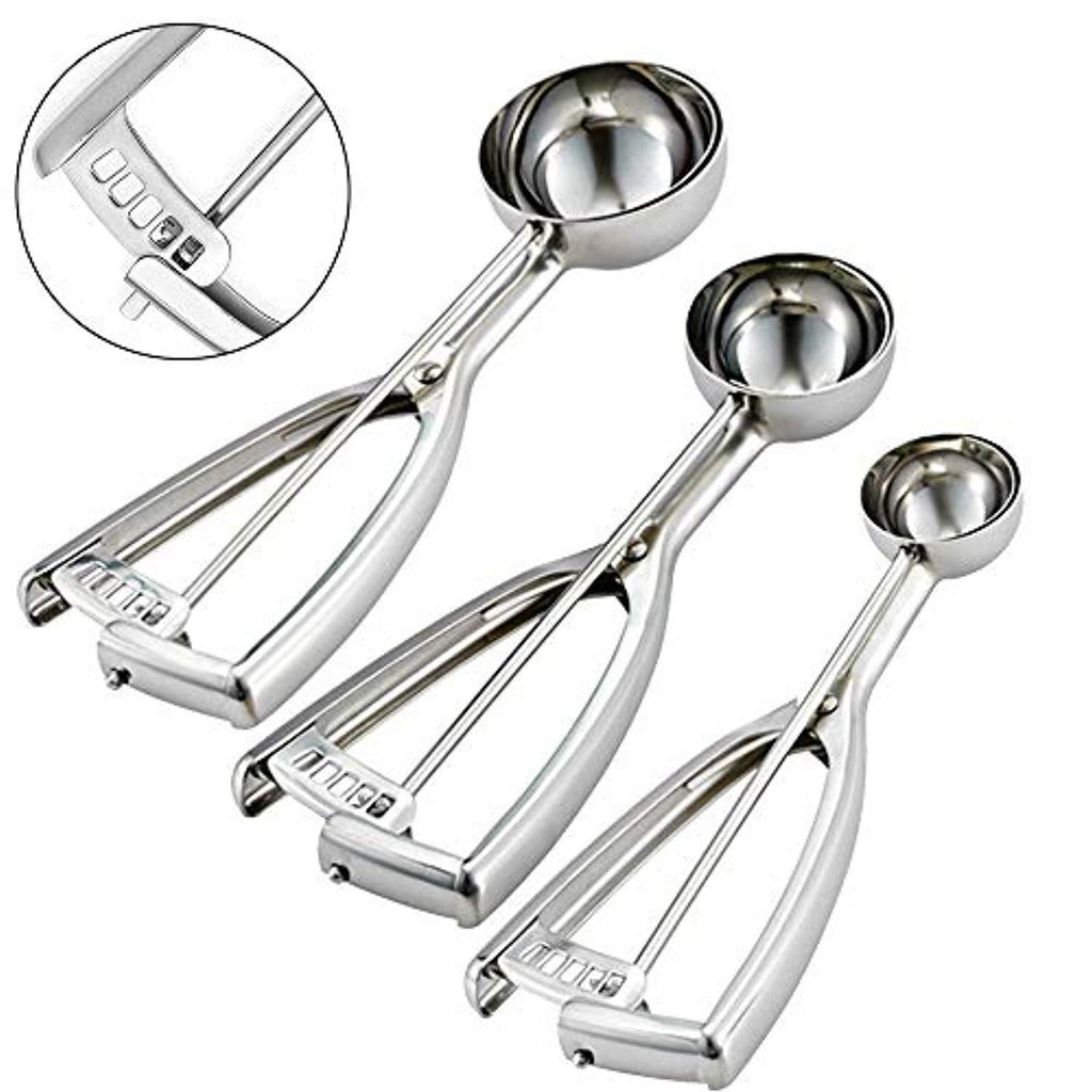 Cookie Scoop Set, Ice Cream Scoop Set, 3 PCS Metal Ice Cream Scoop Trigger Include Large-Medium-Small Size, Select 18/8 Stainless Steel, Secondary Polishing