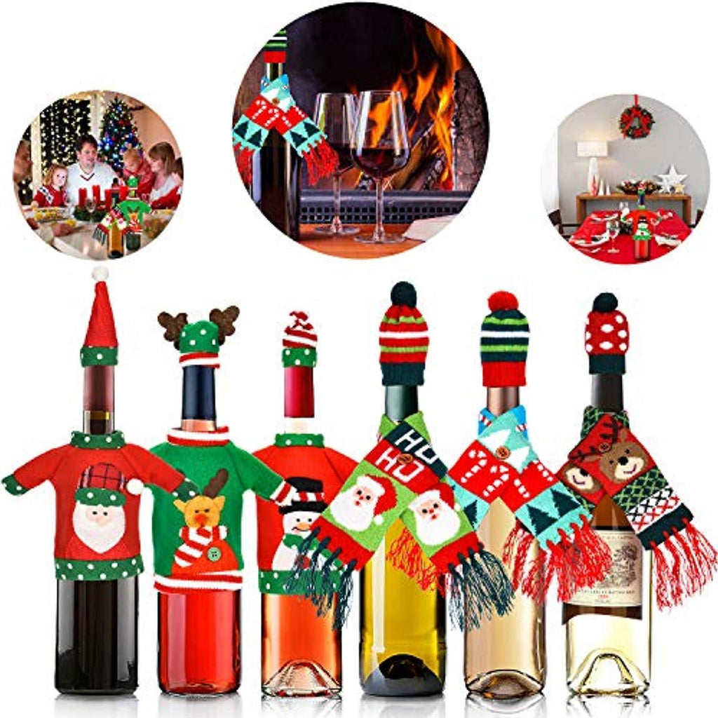 Tatuo 6 Sets Christmas Bottle Covers Ugly Sweater Wine Cover Bottle Decor for Christmas Party Table Decorations (Color Set 1)