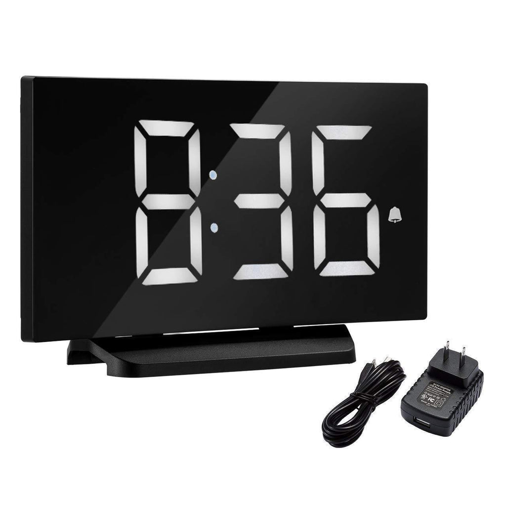 TOPELEK Digital Alarm Clock, 5'' LED Curved-Screen Alarm Clock with Adjustable Dimmer, Snooze Function, 3 Alarm Sounds, Bedside Alarm Clock Bedroom, Kitchen, Office, Blue
