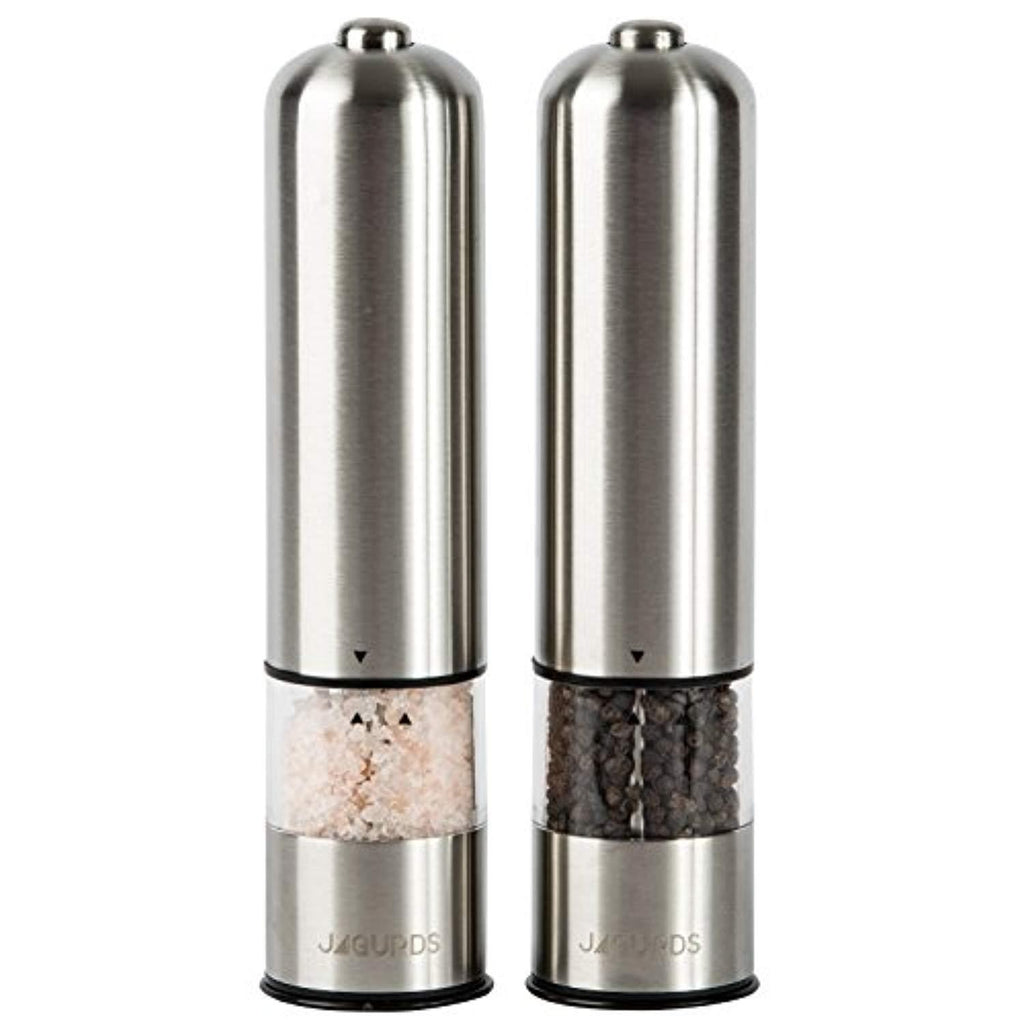 Jagurds Electric Salt and Pepper Mill Set - Premium Stainless Steel One-Handed Spice Grinders with Light, Automatic Battery Operated with Adjustable Coarseness for That Perfect Savory Seasonings