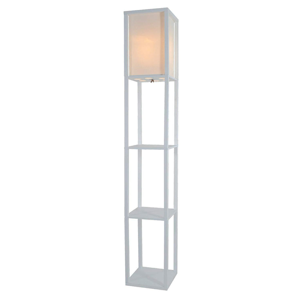 Light Accents Floor Lamp 3 Shelf Standing Lamp 63" Tall Wood with White Linen Shade (Black)