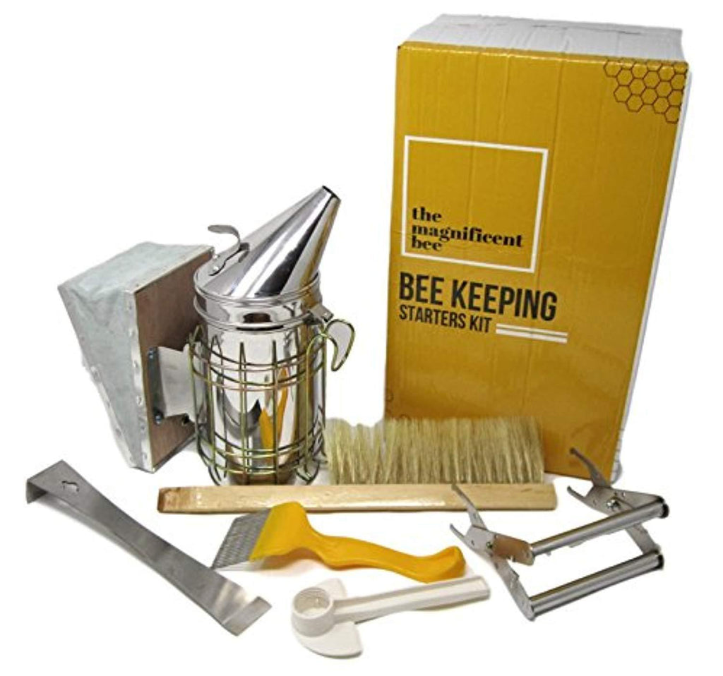 6 Piece Beekeeping Supplies Starters Kit - Bee Hive Smoker, Uncapping Fork Tool, Bee Brush, Frame Grip, Extracting Scraper, Bee Feeder Tool