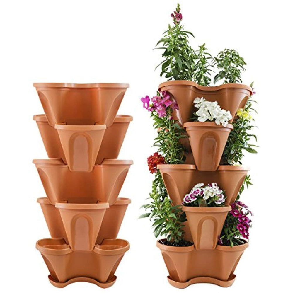 Houseables 5 Tier Planter, Stackable, 28" H x 12" W, Polypropylene, Terracotta, Vertical, Self-Watering, 5-Tiered Pots, Indoor/Outdoor Strawberry Garden Kit, for Flowers, Vegetables, Herbs, Gardening