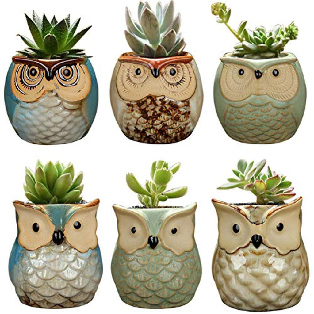 YLINGSU Cerami Succulent Cactus Plant Flower Conta 6 in Set 2.5 inch Owl Pot Ceramic Flowing Glaze Base Serial, Blue (Plants not included)